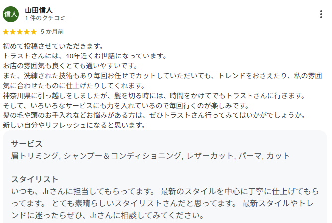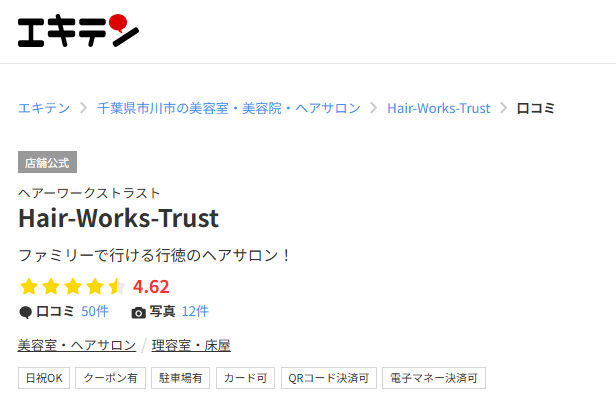 Googleやエキテンにリアルなクチコミ、レビューが多く掲載されていますので